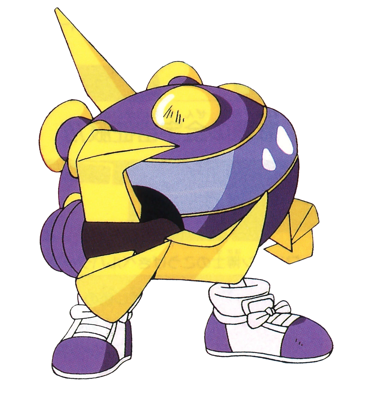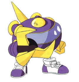BaronBee is a purple bumblebee android ship with yellow details along his turbines, ailerons and, most notably, his claws.[4] He resembles the members of the TwinBee Team to some extent, although he is considerably larger than any of them and has an overall threatening appearance. In this regard, BaronBee features a wide horizontal canopy which gives him a sort of evil-intentioned glance. Furthermore, instead of cartoony glove-like hands, like those of the members of the TwinBee team, he has large triple claws, which greatly add to his menacing visage.